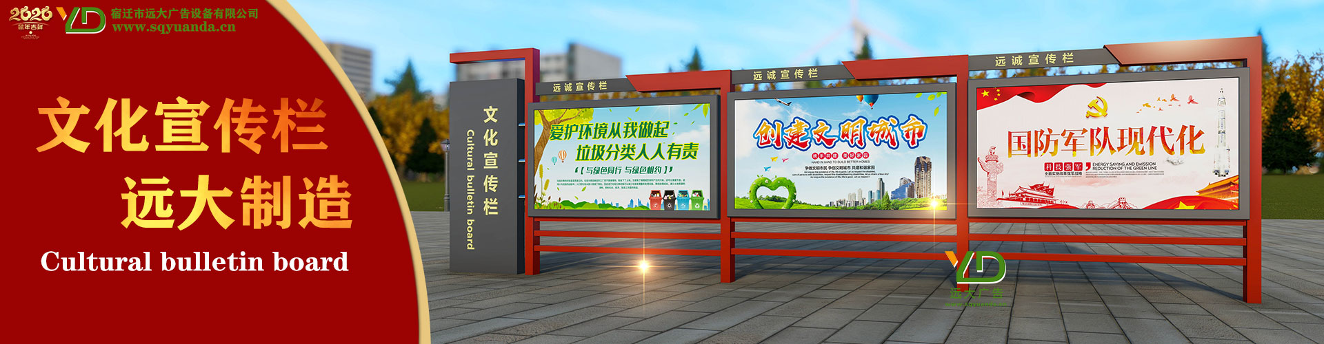 宿遷市遠大廣告設備有限公司是一家專業生產公交候車亭,公交站臺,閱報欄,指路牌,廣告垃圾箱,滾動換 畫燈箱等系列產品廠家!產品多達上百種,亦可根據客戶的需求加工制作。